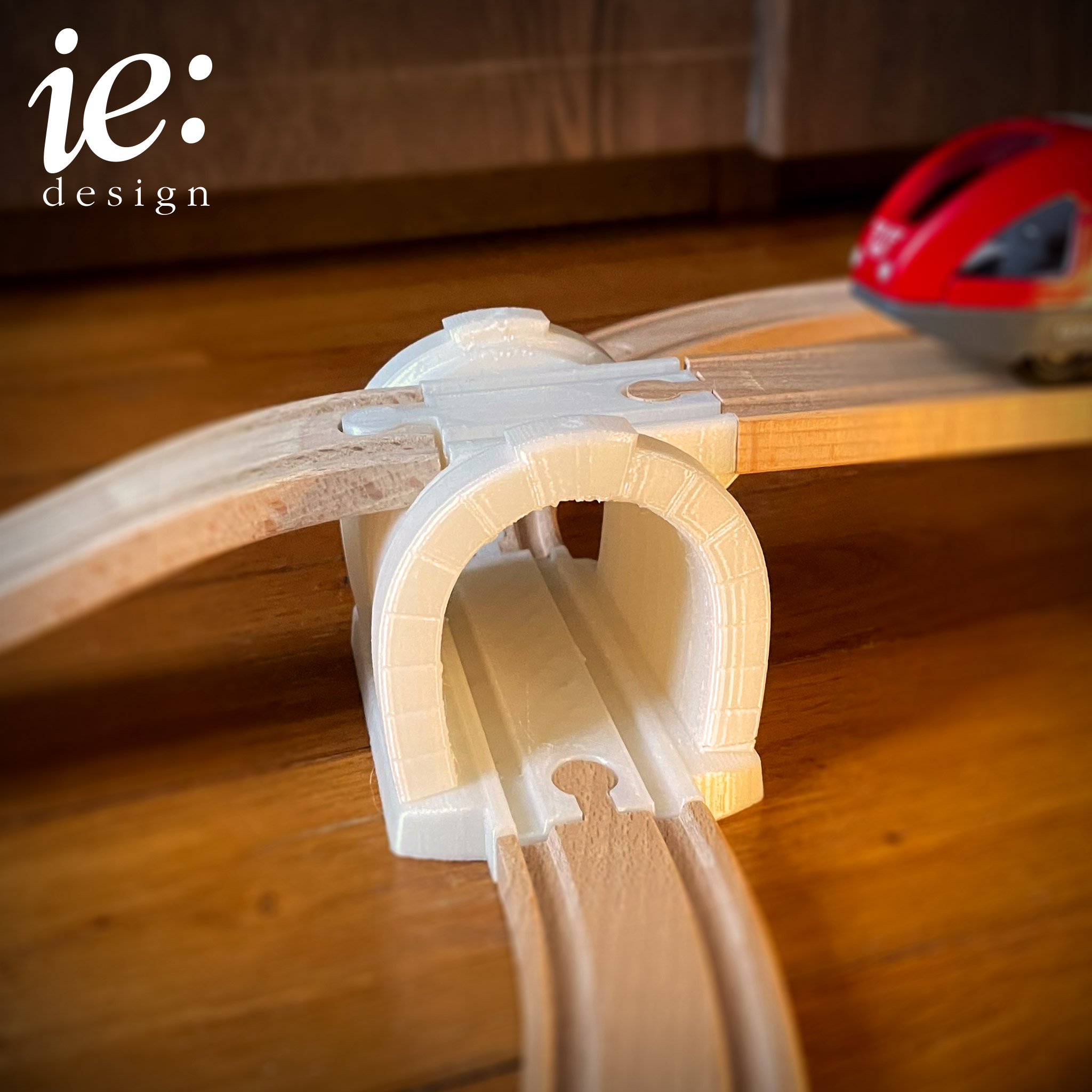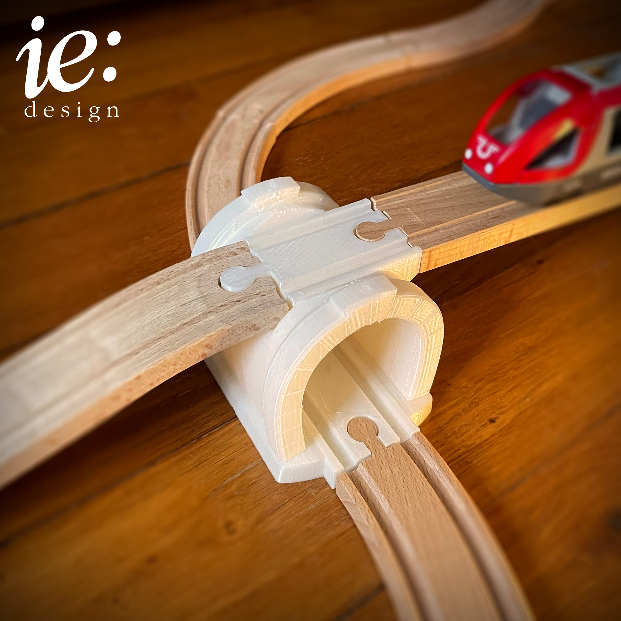 Ce tunnel a été spécialement conçu pour les circuits de petits trains en bois, comme ceux de Brio ou d'Ikea.