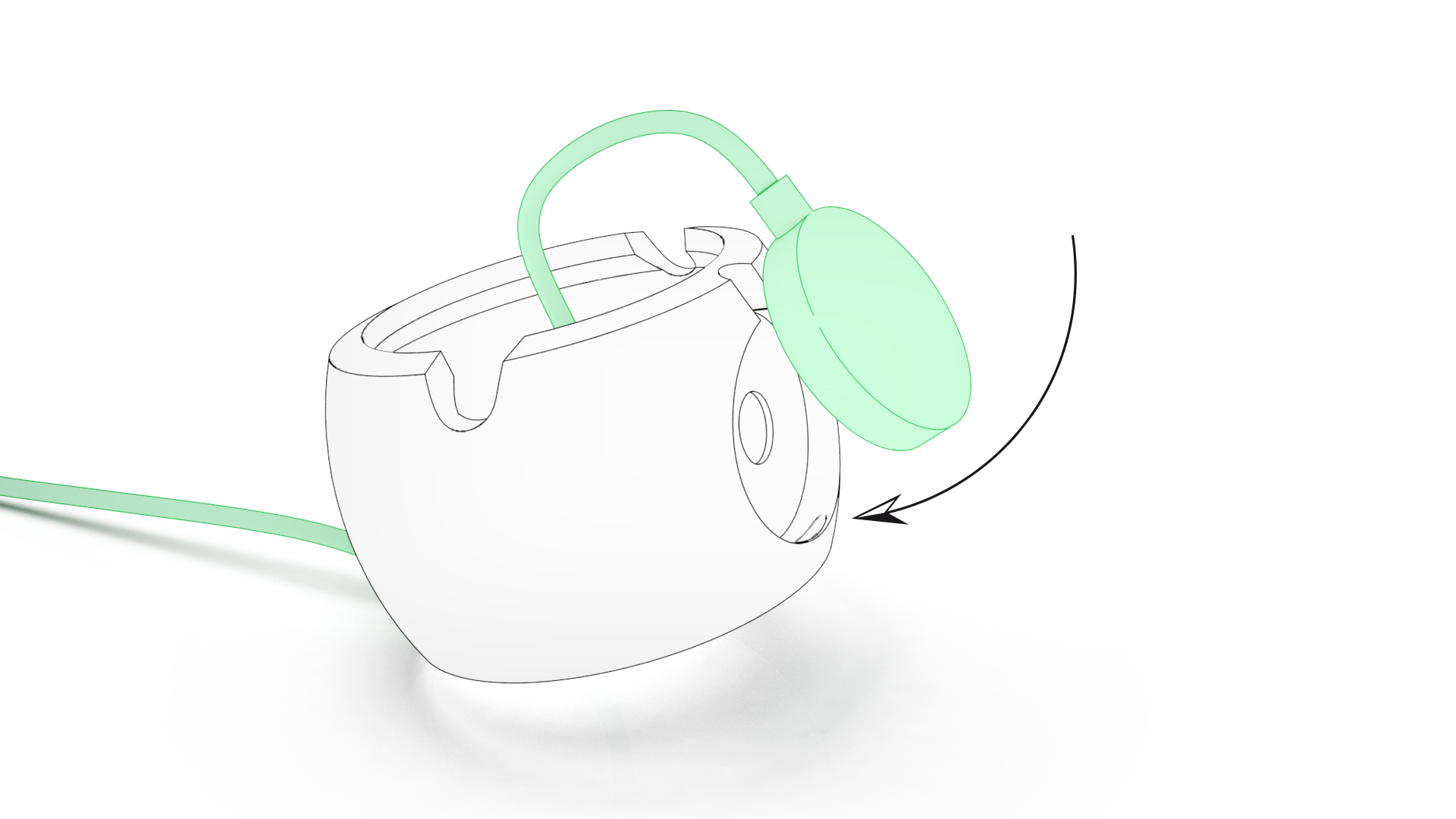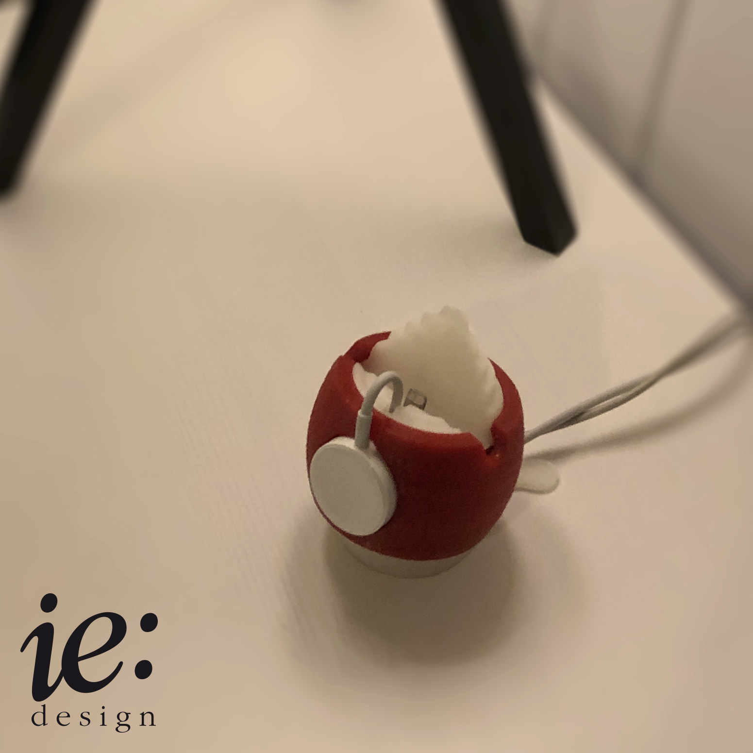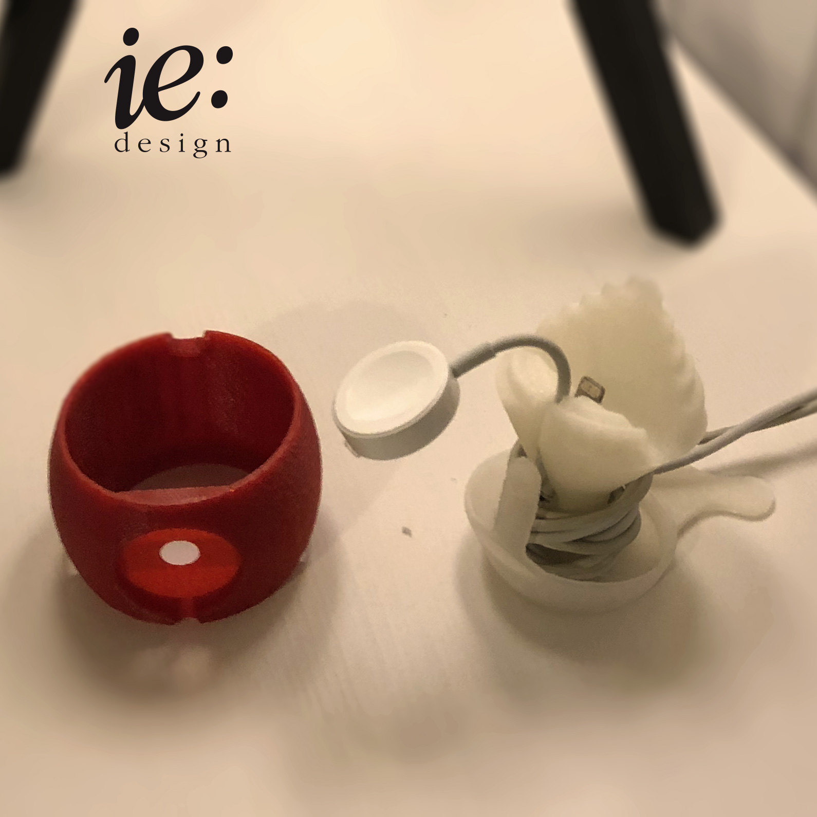 Descendez la couronne de manière à assembler les deux pièces. Insérez le câble du chargeur de l'Apple Watch dans la fente prévue à cet effet, et le flot des deux câbles dans l'encoche arrière pour permettre le bon assemblage des deux pièces.