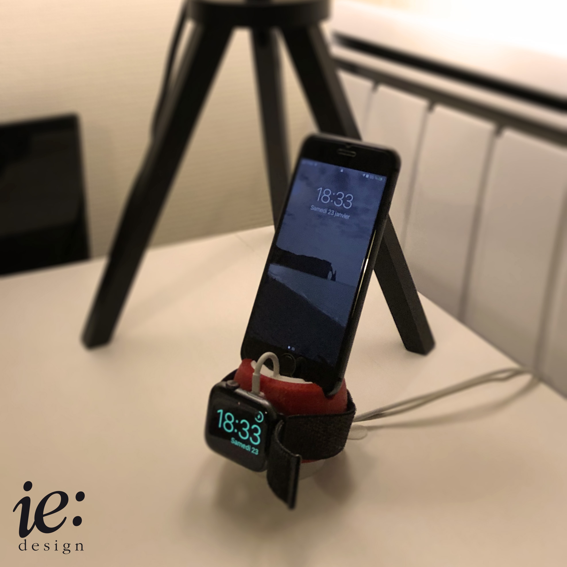 Ce support vous permet de recharger votre iPhone et votre Apple Watch en les disposant de manière lisible.