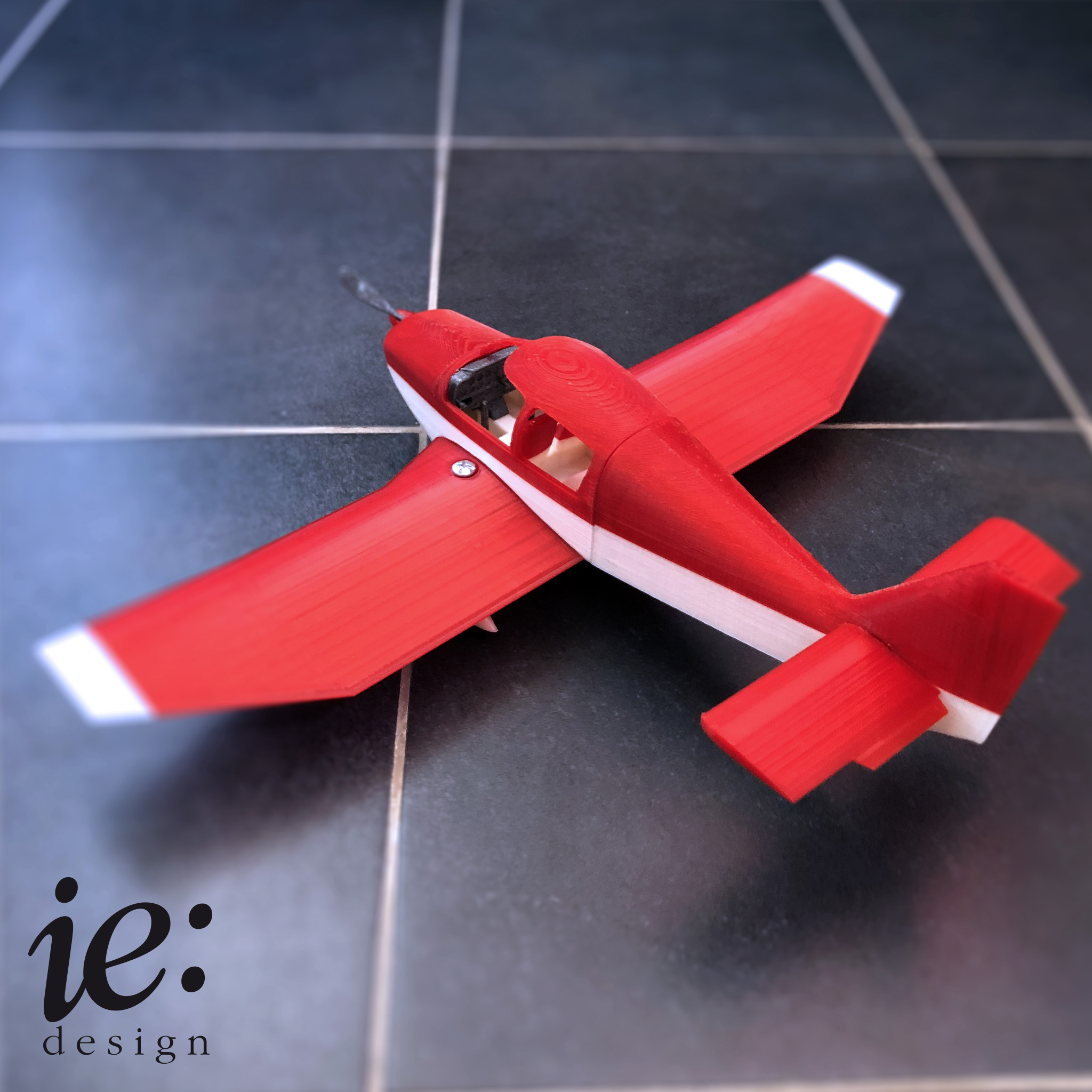 Ce modèle d'impression 3D présente un intérieur détaillé avec quatre siège et le tableau d'instrumentation. Les roues et l'hélice sont mobiles.