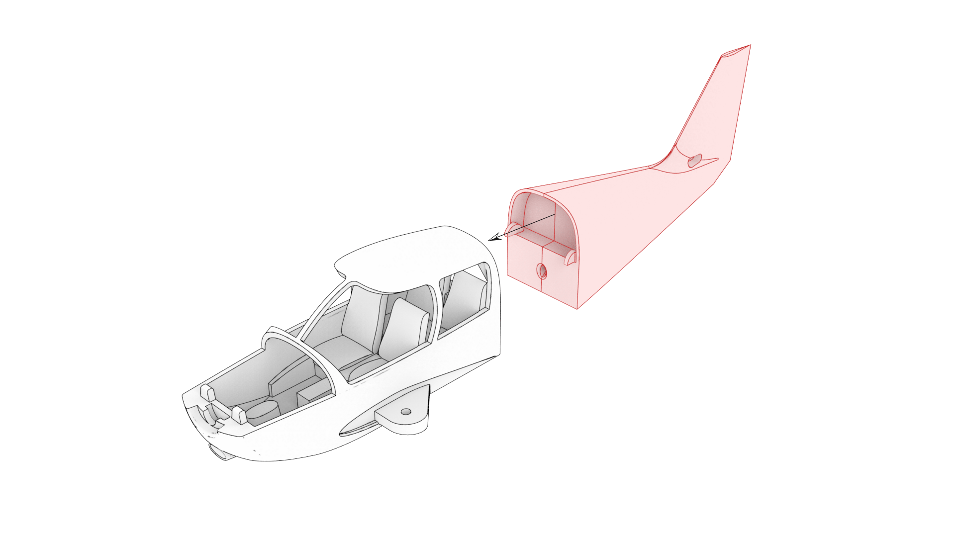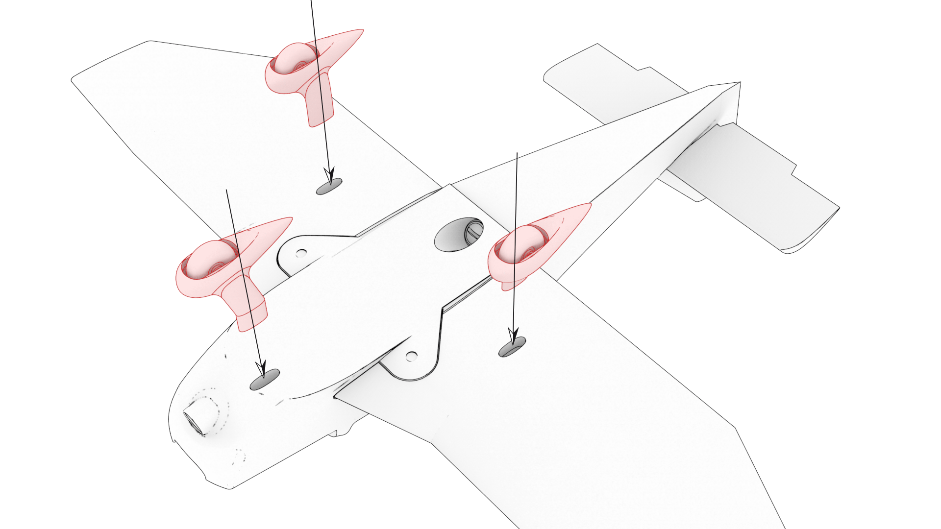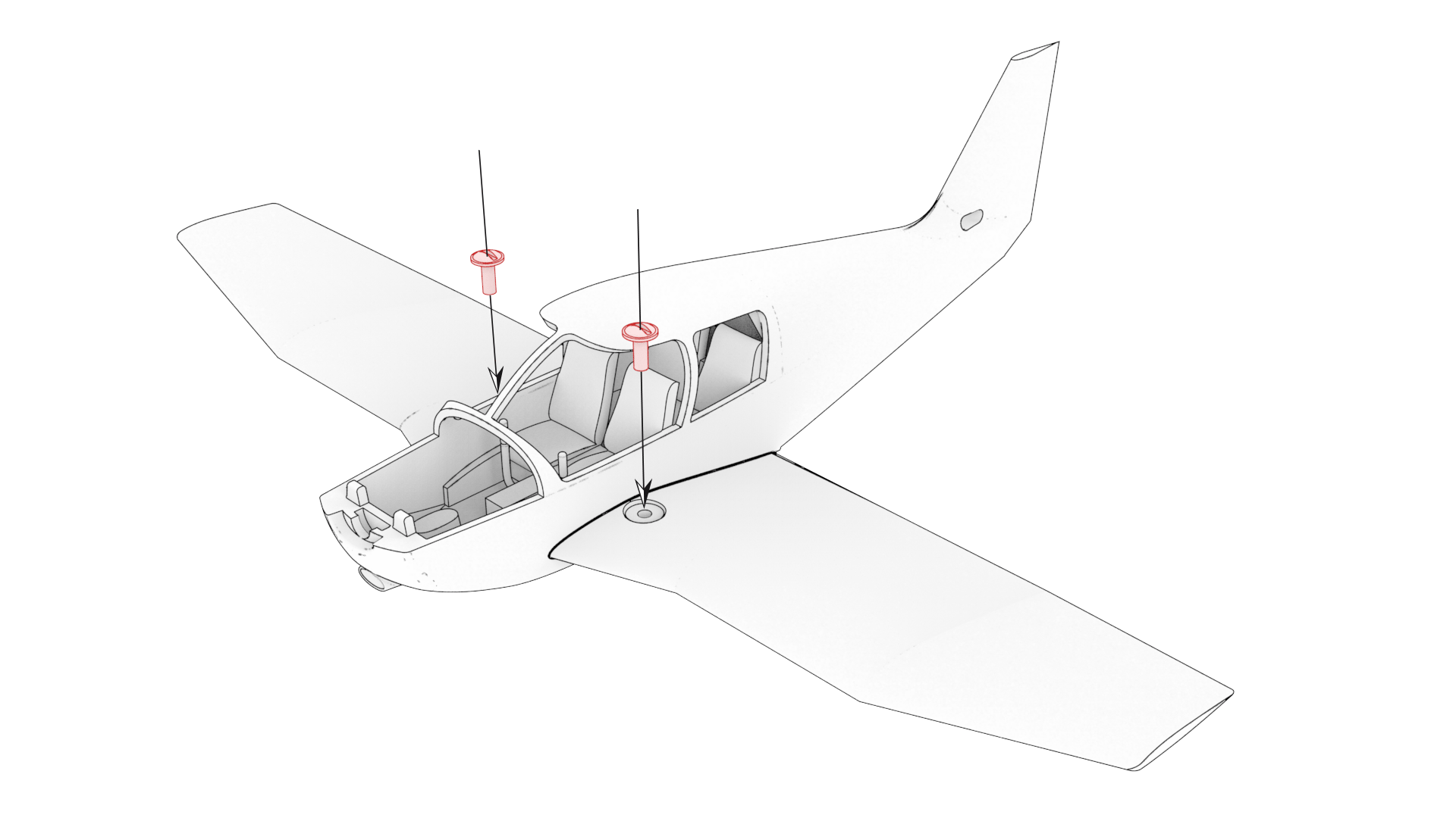 Retourner l'ensemble et visser une M4x20 afin de rendre le corps de l'avion solidaire.