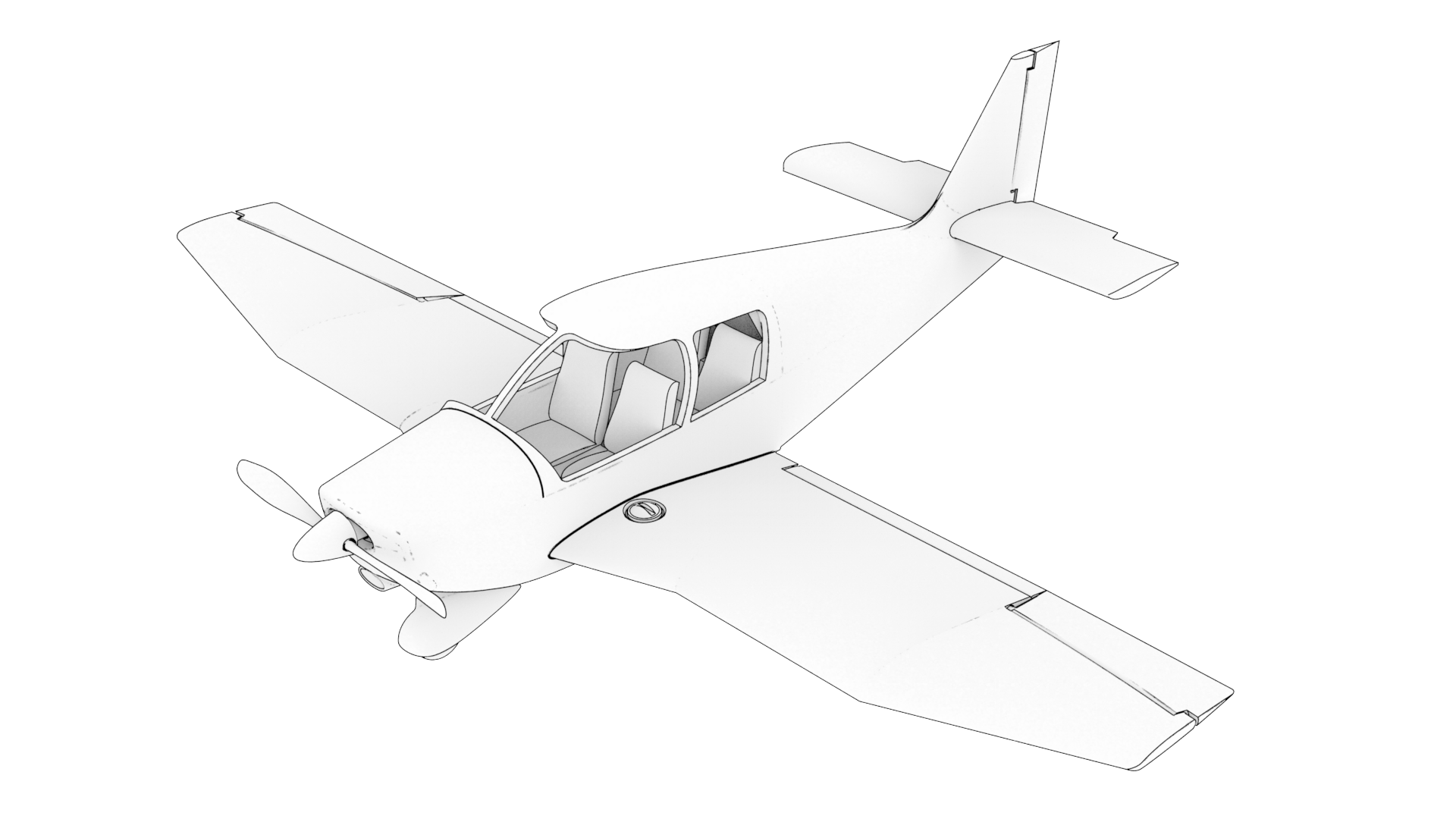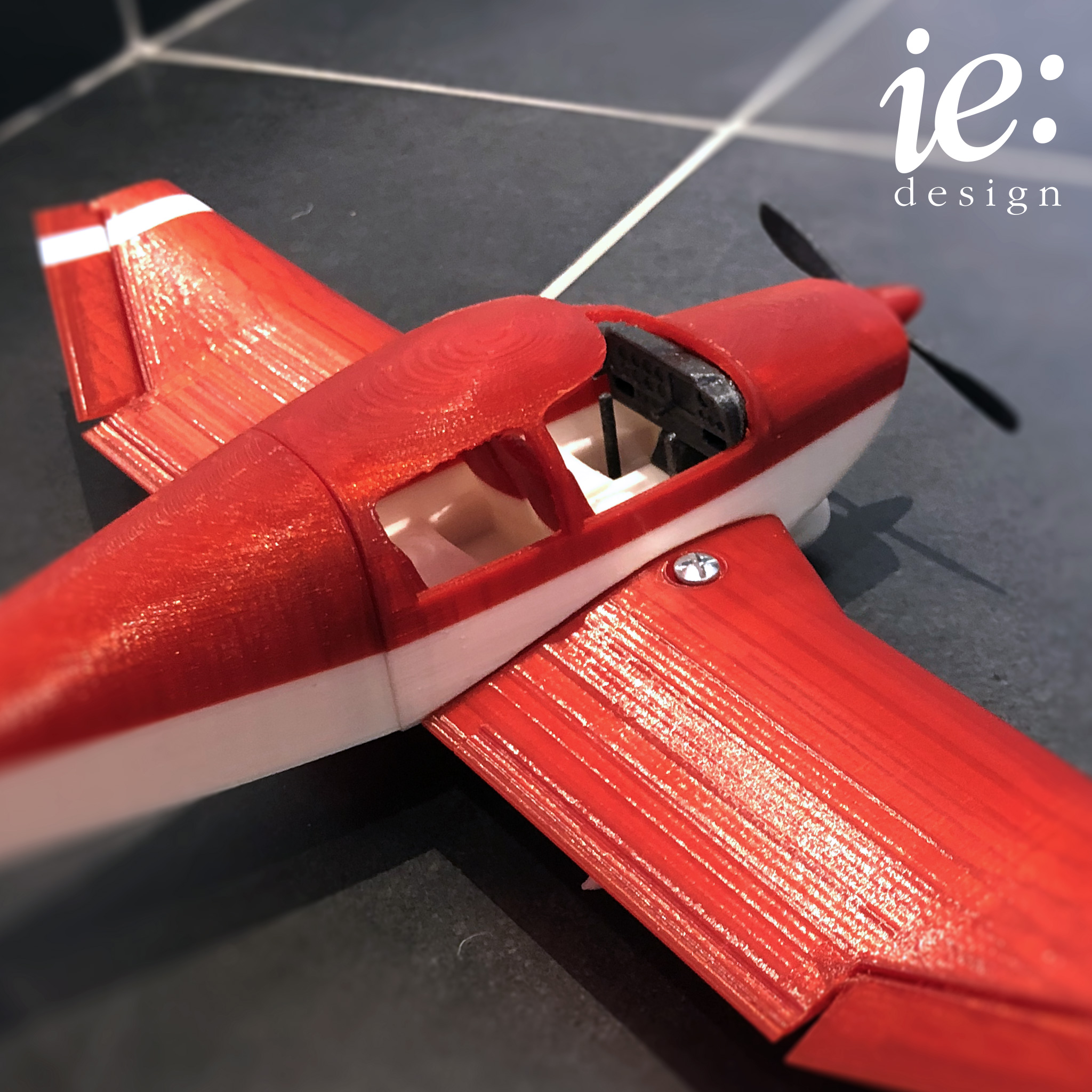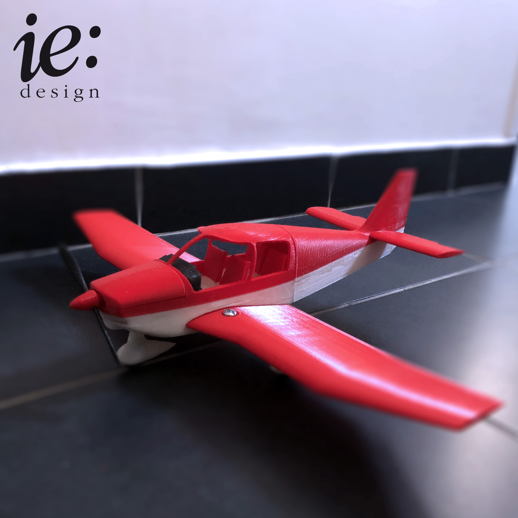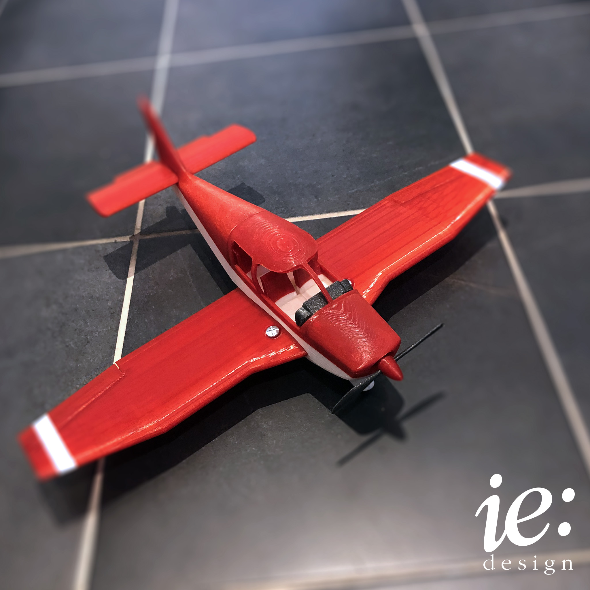 Ce modèle d'impression 3D présente un intérieur détaillé avec quatre siège et le tableau d'instrumentation. Les roues et l'hélice sont mobiles, ainsi que les ailerons et la dérive.