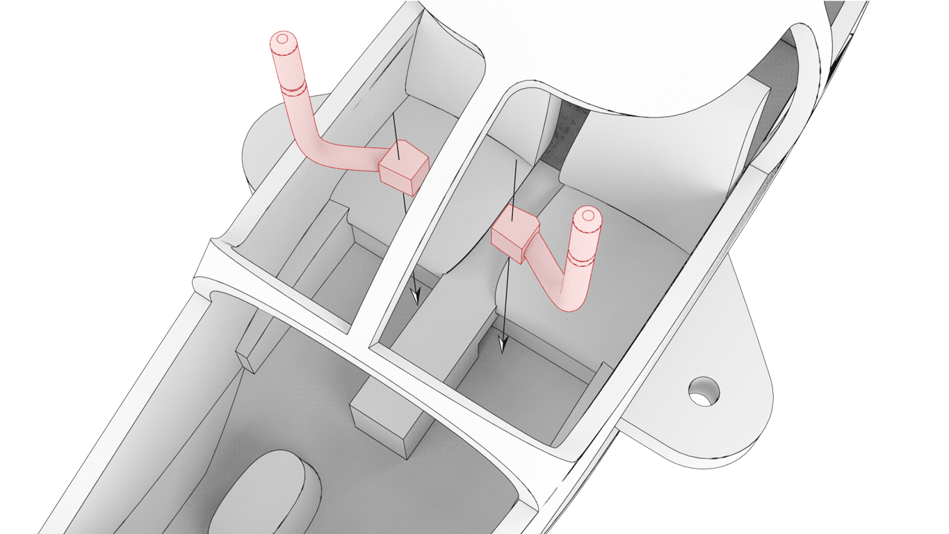 Après l'impression, retirez ces supports (en rouge sur le visuel ci-dessus) à l'aide d'un cutter.