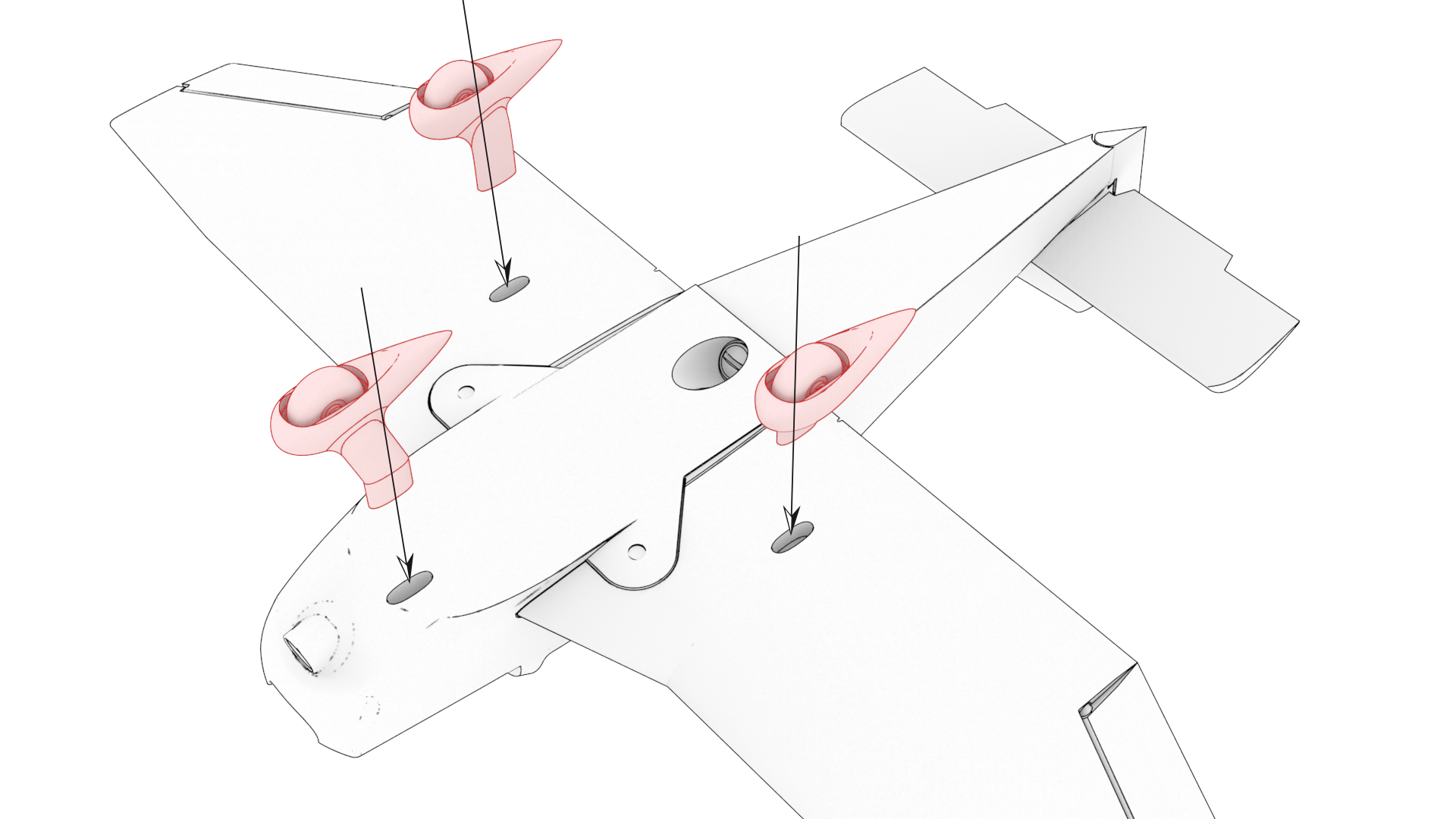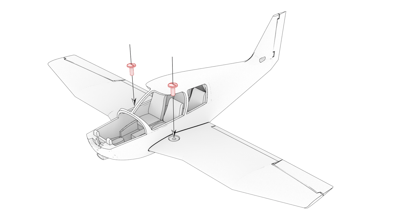 Retourner l'ensemble et visser une M4x20 afin de rendre le corps de l'avion solidaire.