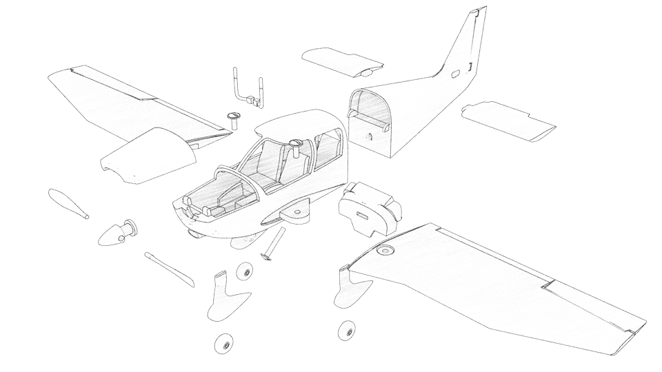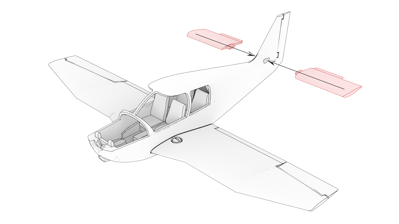 Les ailerons et la dérive sont imprimés en bloc dans les fichiers ie-602102-DR400-ailes.stl