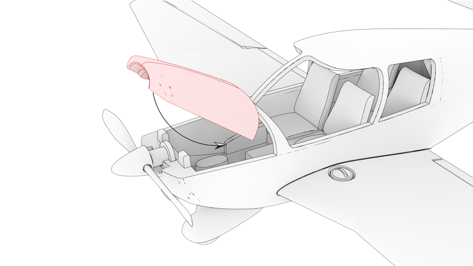 à l'intérieur du cockpit. Cette pièce sert aussi à verrouiller le capot en place.